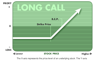 Market opinion? Bullish to very bullish. When to use? Bullish Speculation This strategy appeals to an investor who is generally more interested in the dollar amount of his initial investment and the leveraged financial reward that long calls can offer. The primary motivation of this investor is to realize financial reward from an increase in price of the underlying security. Experience and precision are key to selecting the right option (expiration and/or strike price) for the most profitable result. In general, the more out-of-the-money the call is the more bullish the strategy, as bigger increases in the underlying stock price are required for the option to reach the break-even point.