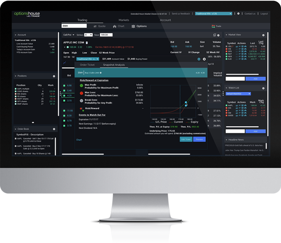 Whether you're in-the-money, or out-of-the-money, we'll help you keep on top of your money with intuitive tools for trading options on stocks, indexes, and futures.